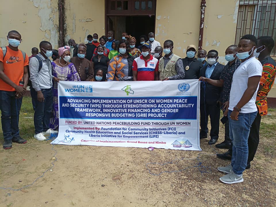 The Foundation for Community Initiatives (FCI) in collaboration with the Community Health Education and Social Services (CHESS-Liberia) and the Liberia Initiative for Empowerment (LIFE) with funding from UN Women, on May 4th and 7th, 2021 launched the project title “Advancing Implementation of UNSCR 1325 on Women Peace and Security (WPS) through strengthening Accountability Framework, Innovative Financing and Gender Responsive Budgeting (GRB)” in Buchanna City, Grand Bassa and in Sanniquellie, Nimba Counties respectively.